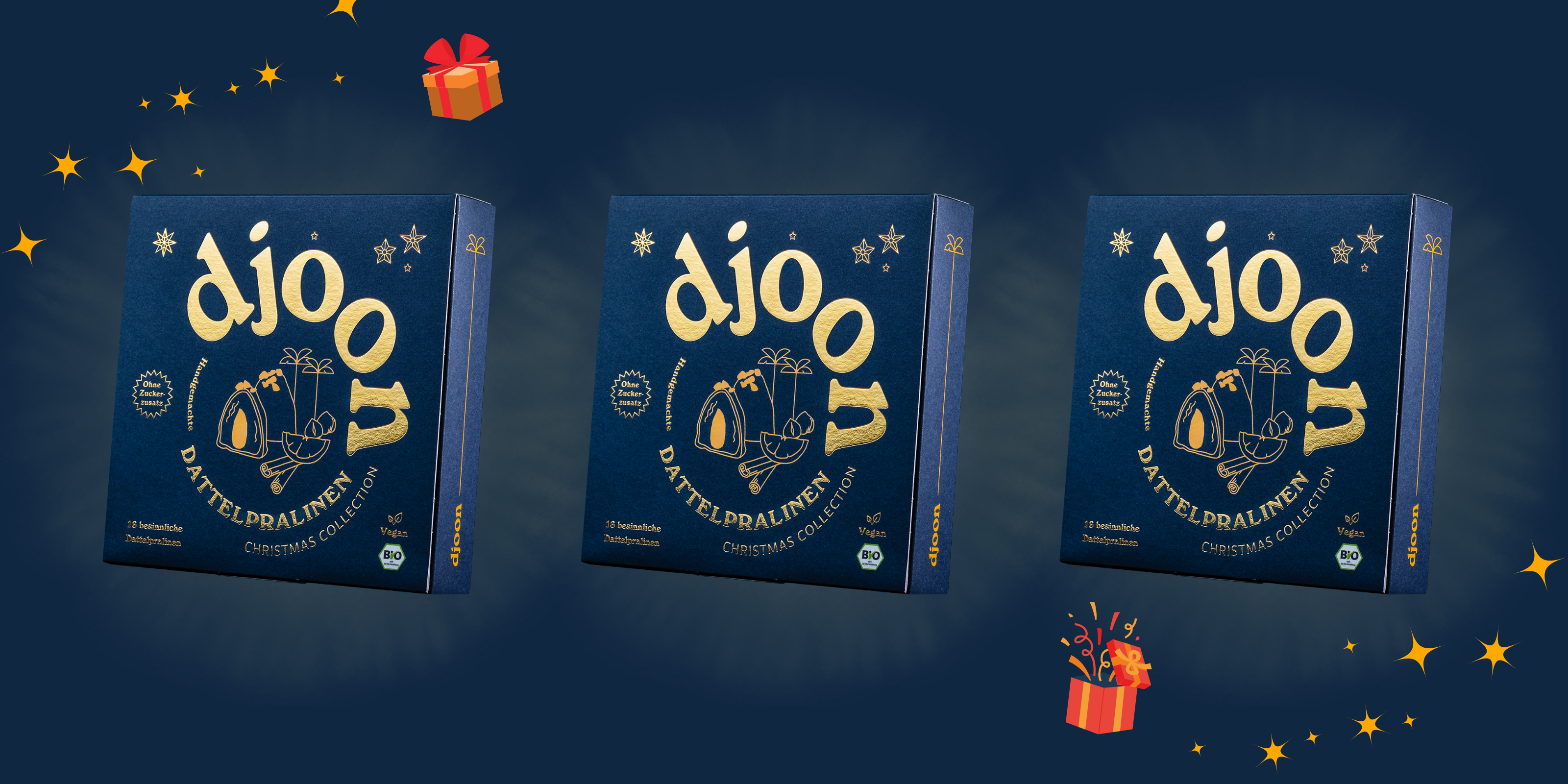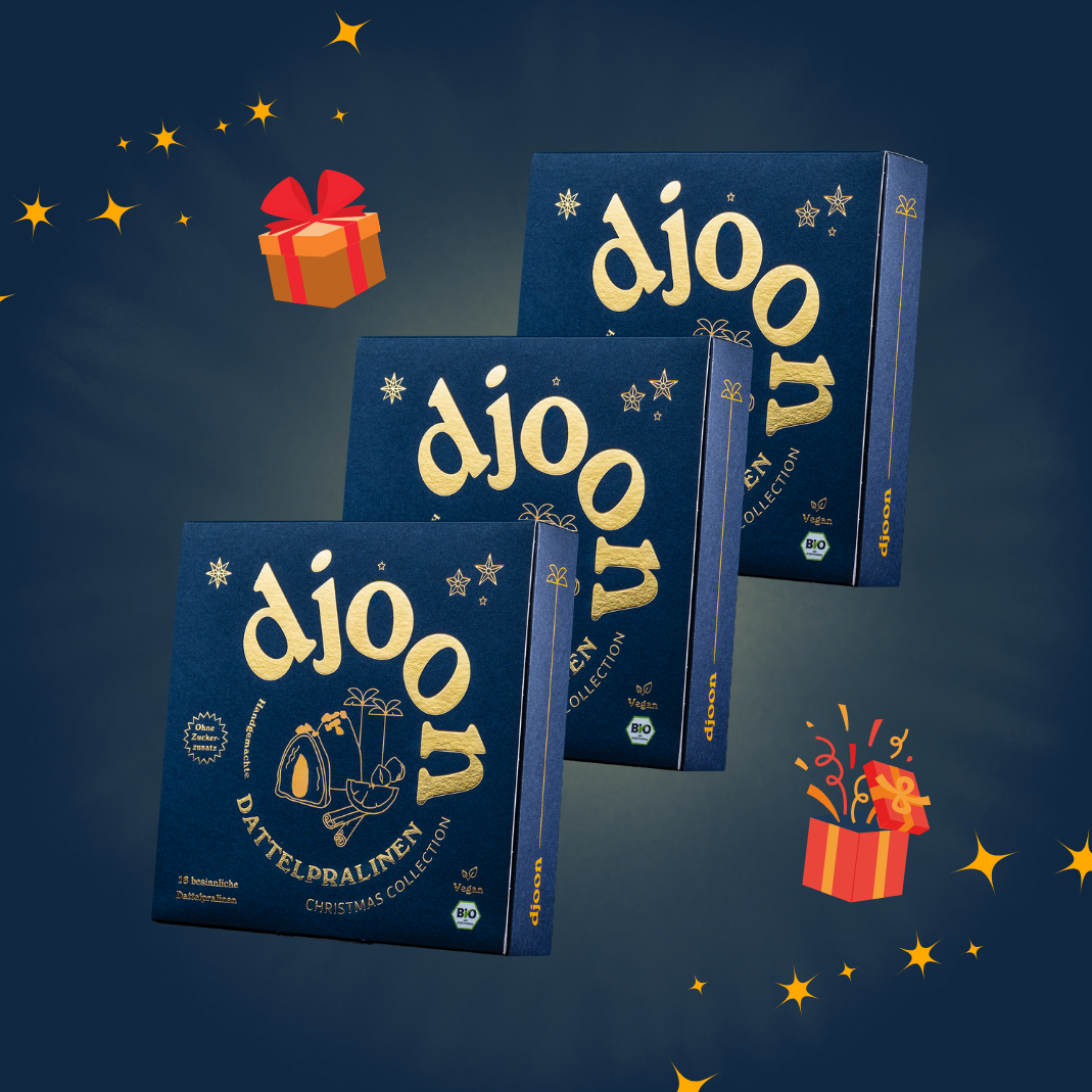 Für die köstlichen Pralinen in unserer Christmas Collection nutzen wir keine künstlichen Zusätze. Stattdessen stammt die Süße ausschließlich von der Medjooldattel – einer wahren Kraftquelle mit allen wertvollen Nährstoffen und Ballaststoffen. Das sorgt für: