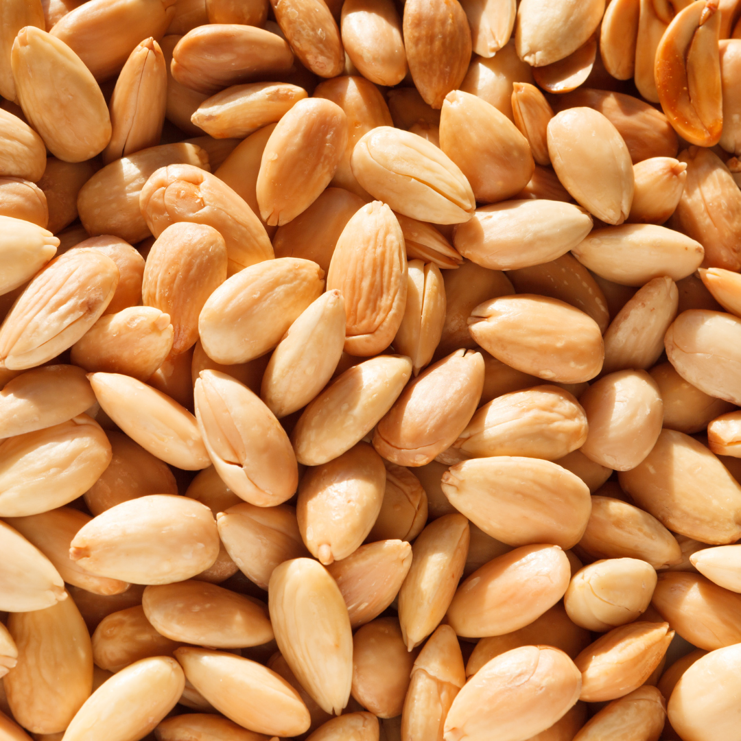 Blanchiert und blonde geröstet bringen sie einen hauchzarten Geschmack von Rosenmarzipan und Crunch.