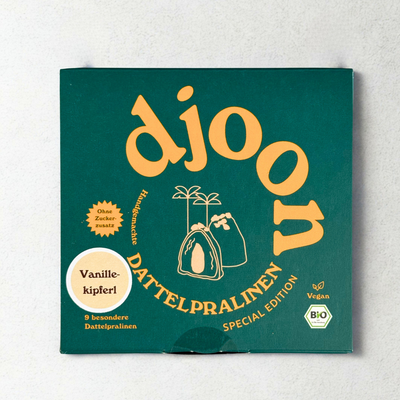 Wir haben ein paar viele unserer hellen Dattelpralinen mit Vanillekipferl-Füllung gemacht! Aber die schmecken auch einfach so himmlisch lecker nach der wohl schönsten Zeit des Jahres und verzaubern sowohl große als auch kleine Naschfreunde - da kann das schon mal passieren. Umso besser für dich, denn diese Kreation gibt's jetzt zum einmalig günstigen Preis 😉. 9 Pralinen, 100g.